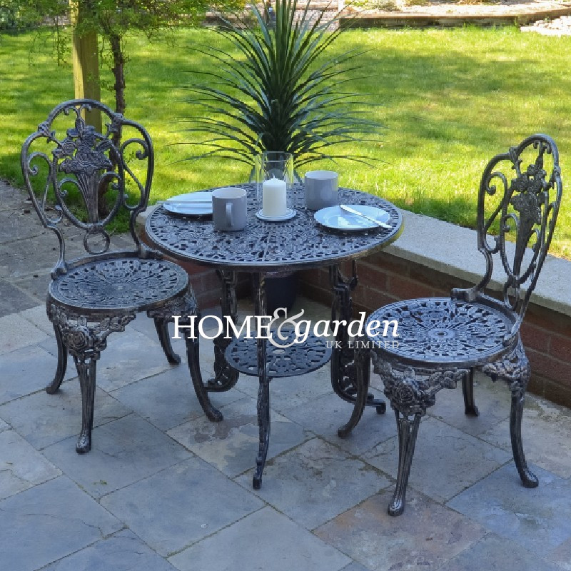 Dimensions: Table – H 63cm x Dia 66cm Chairs – H 86cm x W 39cm